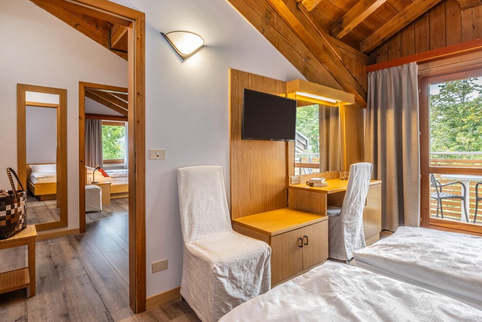 Gemütlichen Zimmer optimal für Familien, da sie aus zwei miteinander verbundenen Zimmern bestehen. Familienzimmer sind mit jeglichem Komfort eingerichtet: begehbarem Schrank, Badezimmer mit Dusche und Fön, 2 Tv LCD, courtesy set, Minibar, Telefon, Internet und Safe. Balkon ausgestattet mit kleinem Tisch und zwei Stuhle. Alle Familienzimmer Superior sind im erneuet Gebiet des Hotels. Alle Zimmer sind mit dem Aufzug erreichbar.