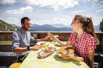 Romantisches Doppelzimmer mit King-Size-Himmelbett, Einrichtung nach Maß in duftendem Zirbel-Holz, ausgesuchte Textilien, Couch, Holzbalkon mit zwei Liegen, Badezimmer mit 2 Fenster und Whirwanne, sorgen für ein gemütliches Wohnklima.