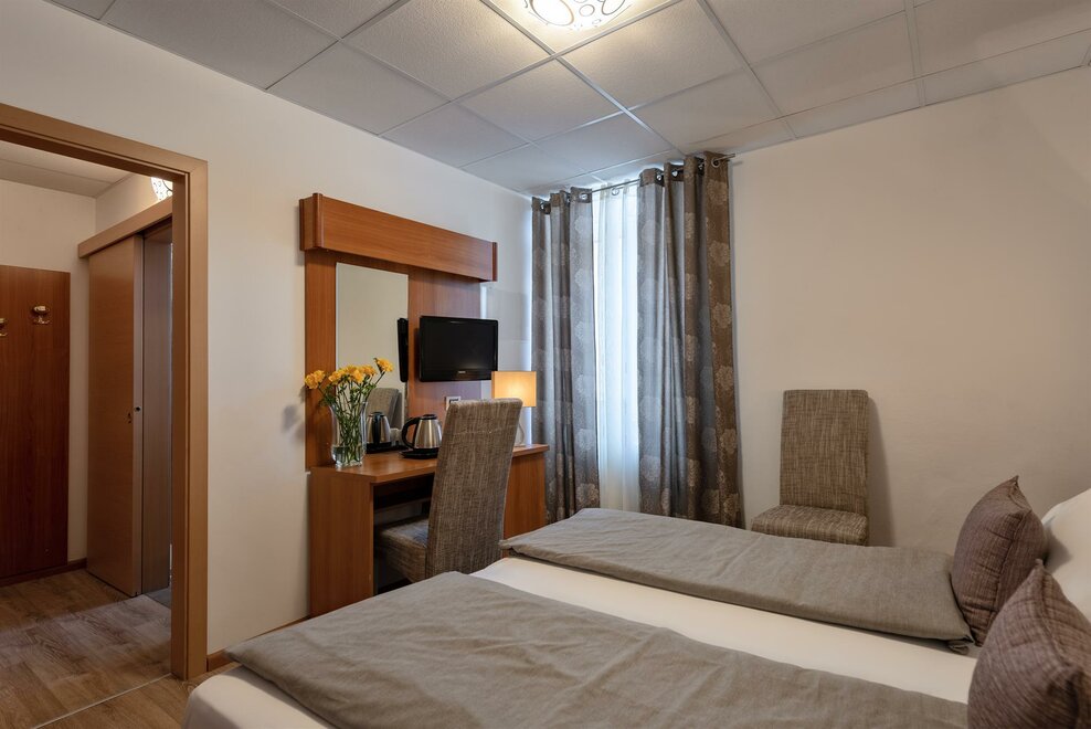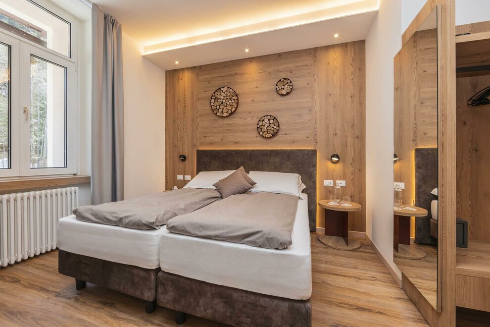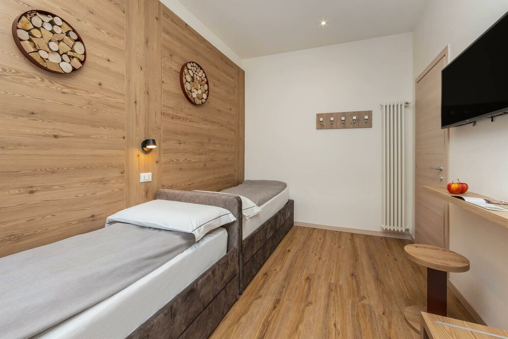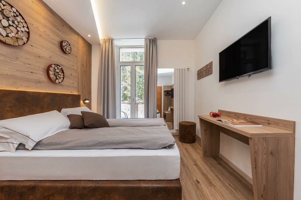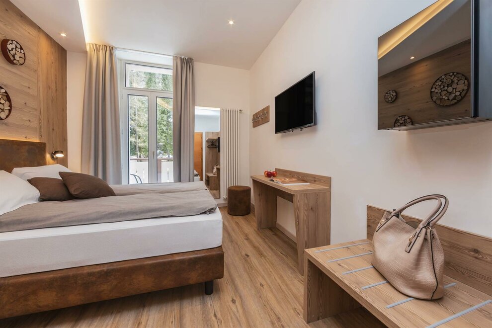 Die Standard Doppelzimmer mit einem Doppelbett oder zwei getrennten Betten sind im Kirschholz eingerichtet und bieten die wichtigsten Annehmlichkeiten wie Haartrockner, Pflegeprodukte, Telefon mit Weckfunktion, 22' TV, Safe und kostenlose WLAN-Verbindung. Alle Zimmer verfügen über Holzböden.Ausstattung Zimmer/Appartement