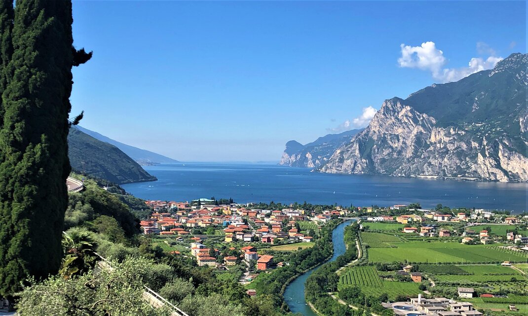 Vorteil des Zimmers: Zimmer mit Panoramabalkon und herrlichem Blick von oben auf das Sarcatal und den Gardasee.