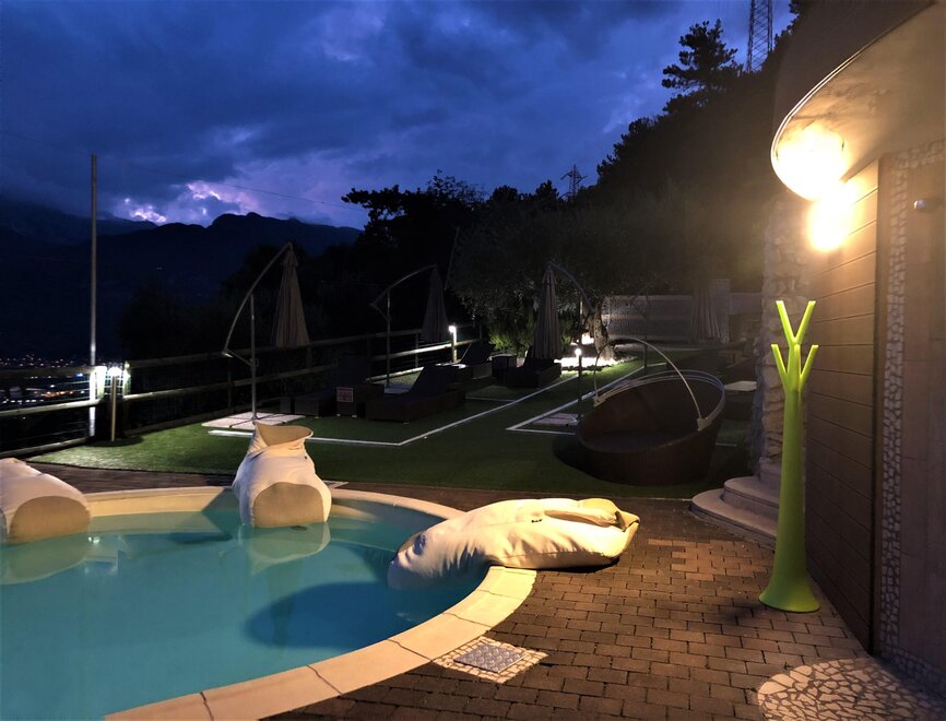 Am Kreisverkehr von Nago biegen Sie rechts ab (1. Ausfahrt) in Richtung Arco. Das Hotel ist ca. 500 m entfernt und befindet sich auf der rechten Seite der Straße.