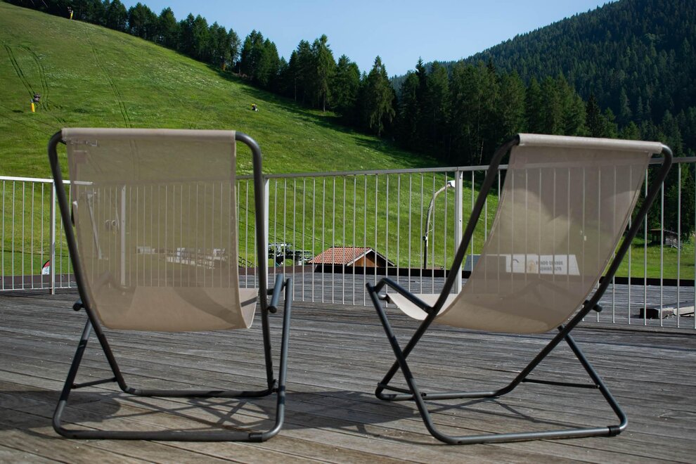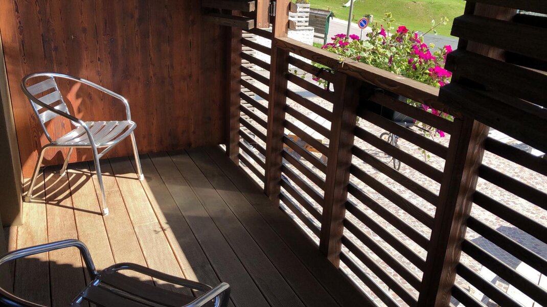 Die Terrasse ist mit Tisch, Stühlen, Liegestühlen und Sonnenschirmen ausgestattet, damit Sie im Freien essen, ein Sonnenbad nehmen und die Ruhe der Berge genießen können.