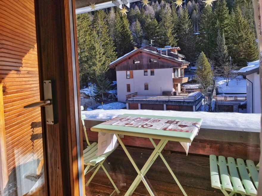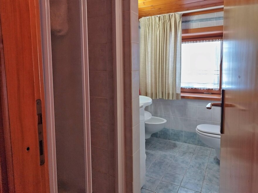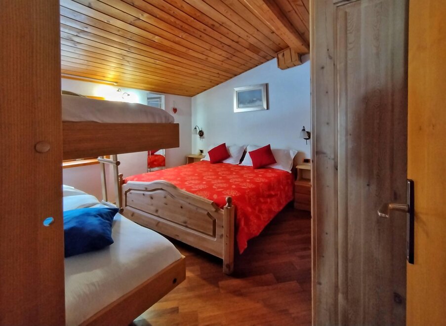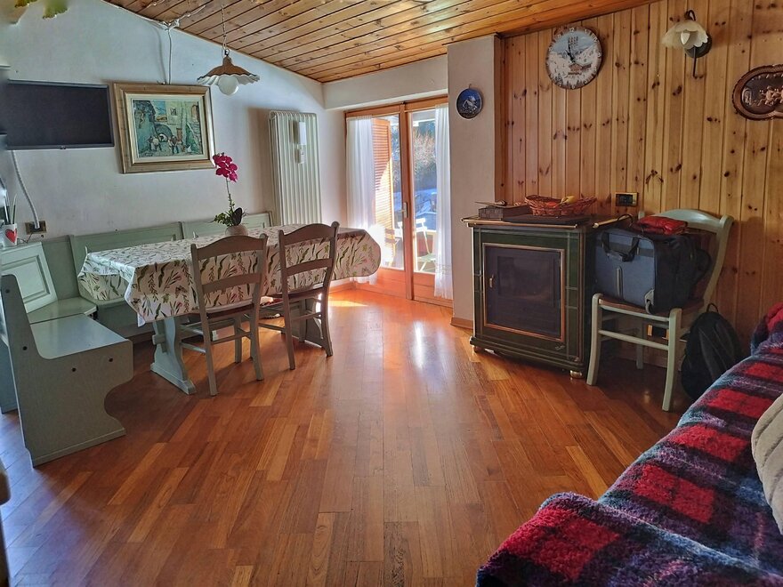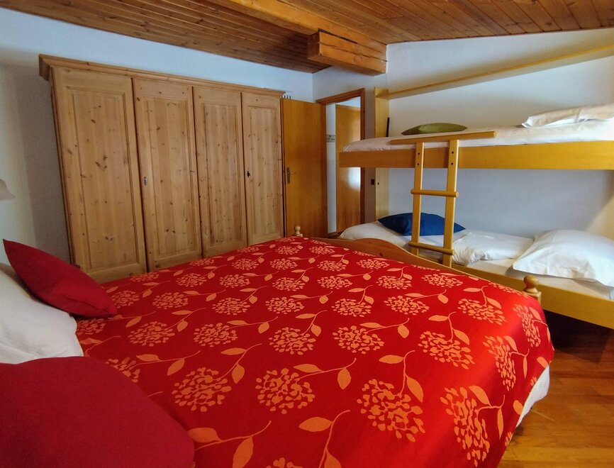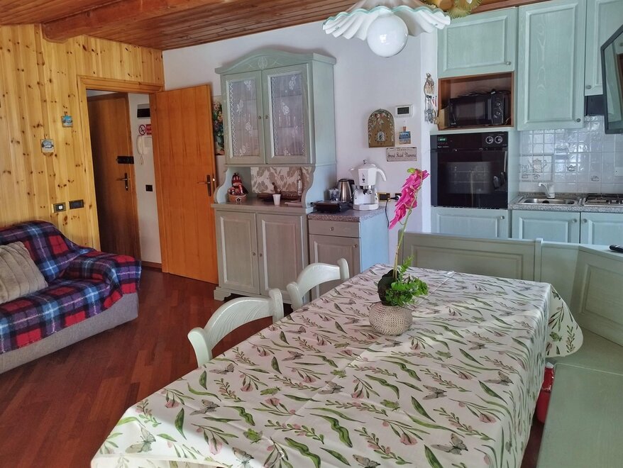 Zwei-Zimmer-Wohnung im dritten Stock, bestehend aus Küche mit Wohnzimmer mit Schlafcouch, Doppelzimmer mit Etagenbett, Bad mit Dusche.