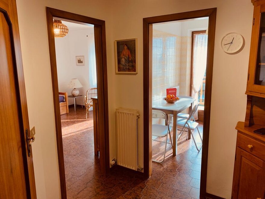 Apartment im ersten Stock, bestehend aus Küche, Wohnzimmer mit Schlafsofa, 1 Schlafzimmer mit Doppelbett und 1 Zimmer mit Etagenbett, 1 Badezimmer mit Badewanne, 1 Raum mit Dusche, private Terrasse und Gemeinschaftsgarten; Kellerraum. Kenntnisse der englischen und deutschen Sprache.