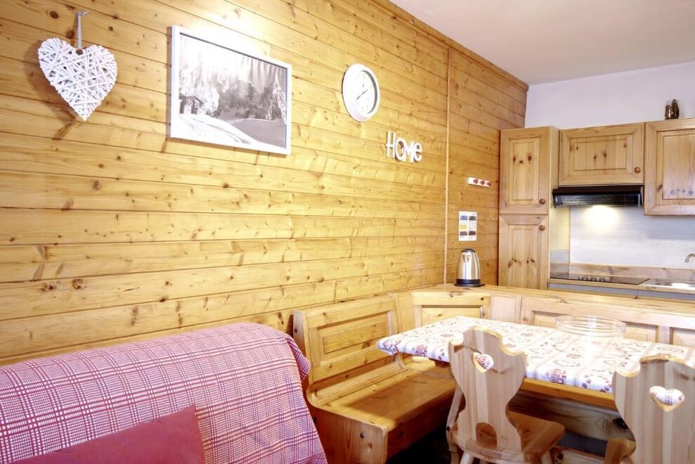 • Wohnzimmer: Ausgestattet mit einer Küchenzeile und einem Essbereich, perfekt für gemeinsame Mahlzeiten. Es gibt auch eine Relaxzone mit einem Sofa und einem TV.