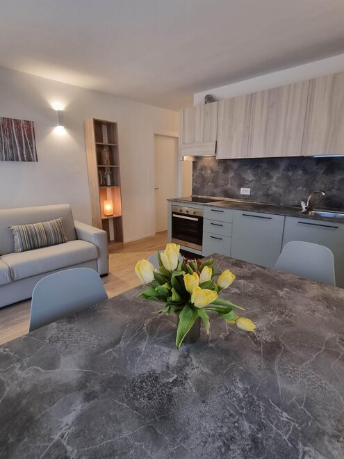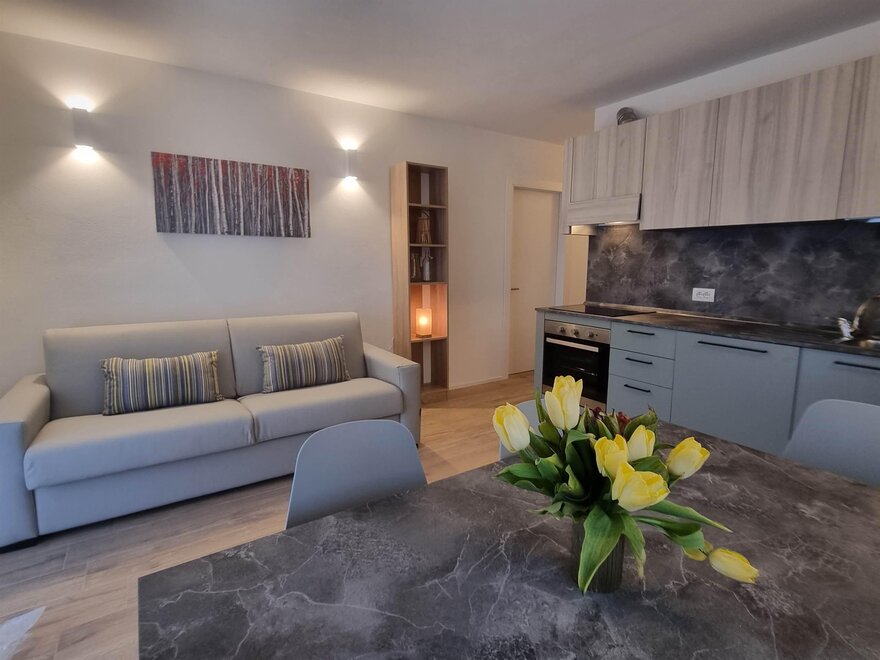 Nach einer sorgfältigen Renovierung des im Jahr 2023 fertiggestellten Einfamilienhauses, die unter dem Gesichtspunkt der Nachhaltigkeit und des Umweltschutzes mit der Installation von Sonnenkollektoren und einer Photovoltaikanlage, einer Fußbodenheizung und einer Ladestation für Elektroautos zur Förderung einer umweltfreundlichen Mobilität durchgeführt wurde, haben wir eine elegante und moderne Erdgeschosswohnung in hellen und pastellfarbenen Tönen geschaffen, die sehr hell und einladend ist und über einen Wohnbereich mit einer großen Küchenzeile und einem Doppelschlafsofa, einen direkten Zugang zum Garten und zur Terrasse zur alleinigen Nutzung, zwei Doppelschlafzimmer und jeweils ein geräumiges Badezimmer, eines davon mit Waschmaschine, verfügt. Ein kostenloser Parkplatz und/oder Motorrad auf unserem Privatparkplatz vervollständigen die Wohnung. Besonders geeignet für Paare, Freunde oder Familien mit bis zu 6 Personen. Vierbeinige Freunde sind ebenfalls willkommen.