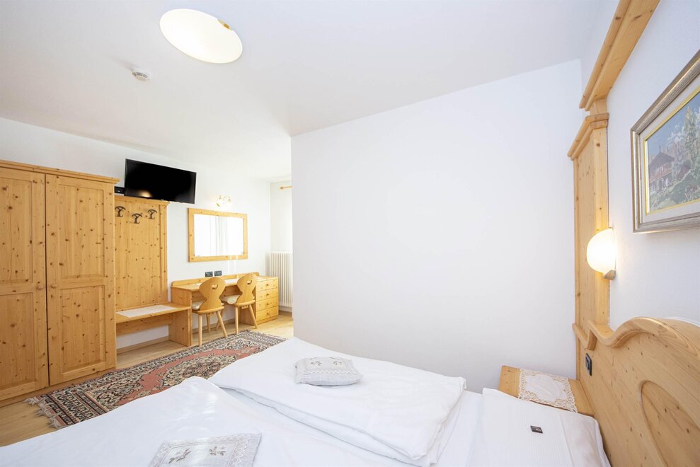 Die Einzelzimmer bieten helle und geräumige Zimmer mit angeschlossenem privatem Badezimmer einschließlich der wichtigsten sanitären Einrichtungen, sie sind mit einem privaten Balkon ausgestattet, von dem aus Sie einen exklusiven Blick auf die Dolomiten genießen können Die Zimmer sind mit einem Schreibtisch, einem LED-Flachbildfernseher und kostenlosem WLAN ausgestattet.
