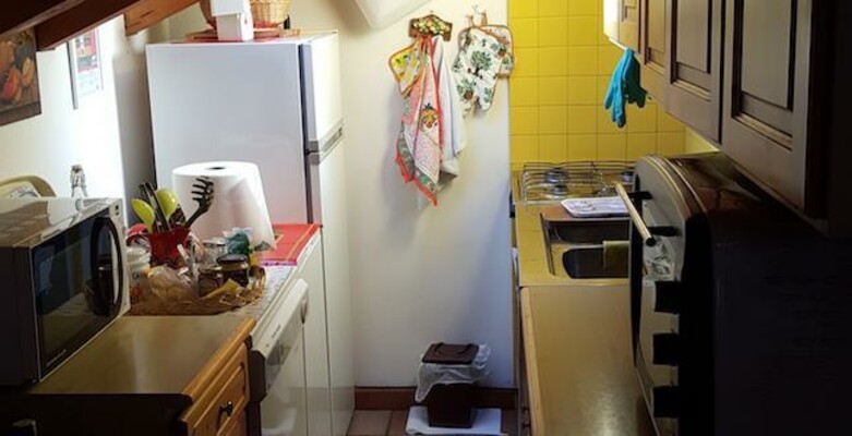 Apartment im zweiten Stock, bestehend aus Wohnzimmer mit Kochnische, 1 Schlafzimmer mit Doppelbett, 1 Badezimmer, Terrasse; Raum zur Lagerung von Equipment; Haustiere kleiner Größe erlaubt. Gesprochene Sprachen: Französisch und Englisch.