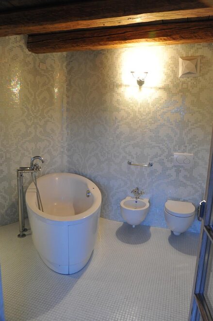Waschtisch, Fließendes Kalt- und Warmwasser, Bidet, Dusche oder Badewanne
