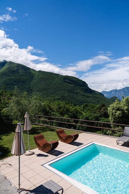 Die Ferienwohnungen Maso Salim befinden sich oberhalb vom charakteristischen Ort Drena, nur wenige Minuten von Arco, dem Kletterzentrum des Gardasees. Inmitten der Natur, umgeben von Weinbergen ist es der ideale Ort für Aktivurlauber und Familien, um sich zu entspannen und dem Outdoor Sport zu widmen. Voll ausgestattete Appartements für 2-7 Personen verschiedener Größe, rustikal in Massivholz, mit Balkon, Kamin und allem Komfort. Vor dem Haus befindet sich eine große Terrasse mit Barbecue und Pizzaofen für romantische Sommerabende, während sich die Kinder am Spielplatz direkt neben dem Haus vergnügen können! Die beeindruckende Berglandschaft bietet unzählige Möglichkeiten zum Wandern, Bersteigen, Mountainbiken und KIettern für alle Ansprüche. In nur 5 Gehmin. erreichen Sie Kletterwände für Fortgeschrittene. Nicht zu verpassen ist auch der Klettersteig Rio Salagoni von Drena! Zum Windsurfen lädt sowohl der nahe Cavedinesee, als auch der Gardasee (15 min) mit seinem Windsurfschulen ein