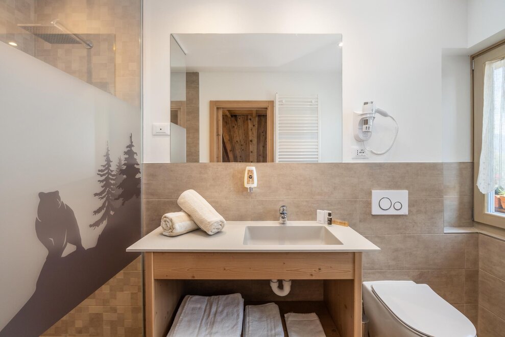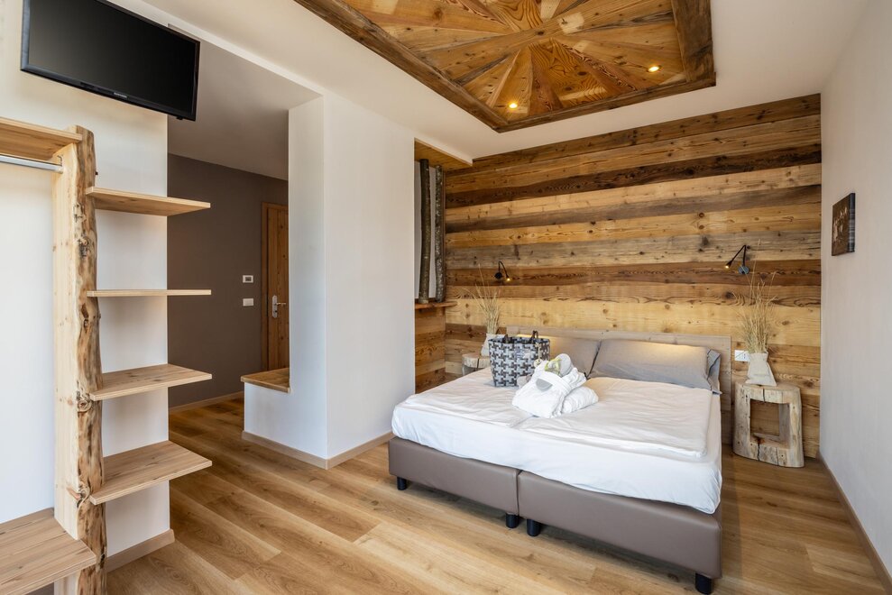 Die 8 Doppelzimmer im MOUNTAIN HOUSE sind alle unterschiedlich: einige sind von altem Holz geprägt, andere von Kiefernholz; alle haben einen großen Balkon und allen Komfort! Was sie jedoch gemeinsam haben, ist der einzigartige und unbezahlbare Blick auf das Tal, die Brenta-Dolomiten und den Santa Giustina See!Die erhöhte Lage im Vergleich zum Hotel, die direkte Nähe zum SPA Alpina (das sich im Erdgeschoss des MOUTAIN HOUSE befindet), die rustikale Einrichtung machen die MOUNTAIN ROOMS zu einer Oase der Ruhe und des Friedens, zu einem abgeschiedenen Rückzugsort abseits von Alltag und Stress.
