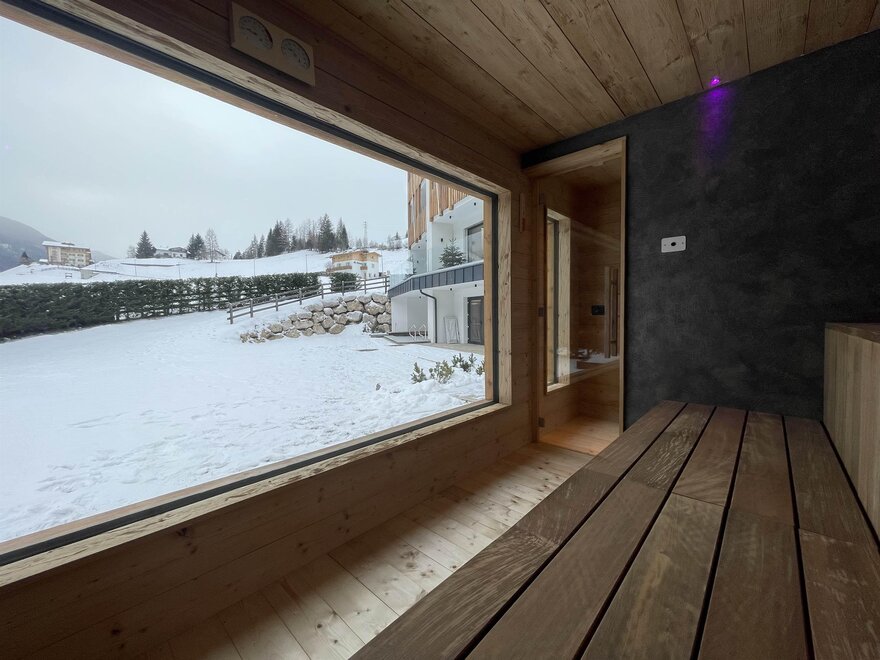 Im Hotel Miravalle beginnt jeder Tag mit berührenden Ausblicken und endet in der warmen Gastfreundschaft des Fassatal. Ein Highlight ist ohne Zweifel der Wellnessbereich: ein Innenpool, der mit dem Außenbereich verbunden ist, um zwischen den Dolomiten zu schwimmen; ein sorgfältig gestaltetes Wellnesszentrum mit Saunen, Dampfbädern und Ruhezonen; sowie eine eindrucksvolle Panoramasauna im Garten, ideal zum Entspannen und dabei die Gipfel bei Sonnenuntergang in rotes Licht tauchen zu sehen.