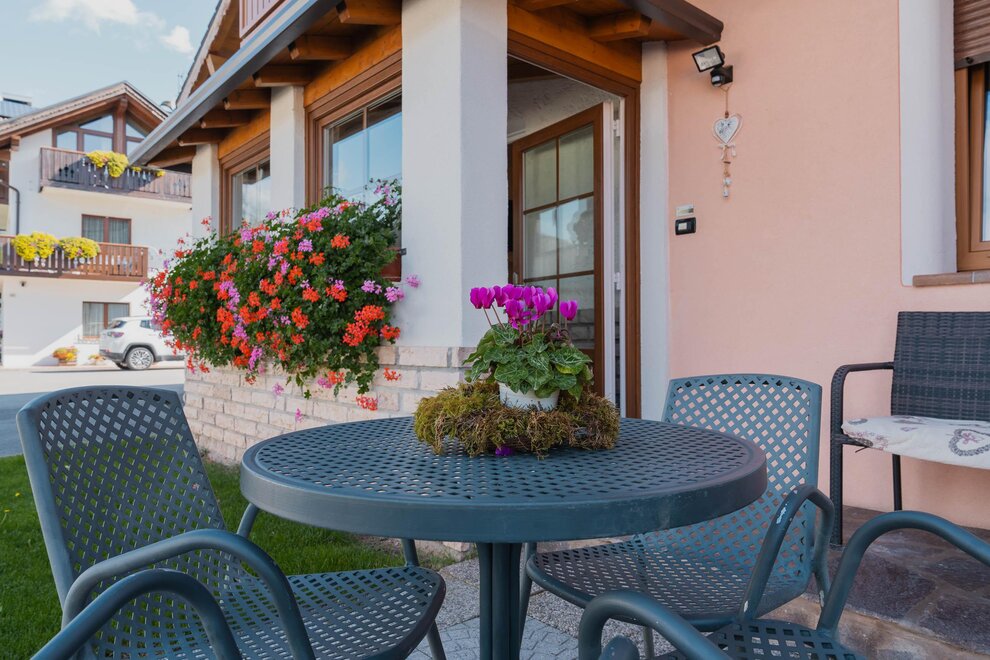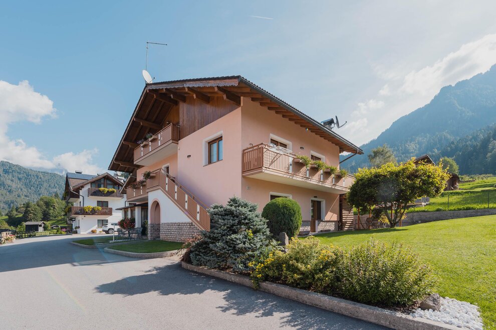 Umgeben von Grün, in ruhiger Lage, nur wenige Schritte vom Zentrum von Fiera di Primiero entfernt.