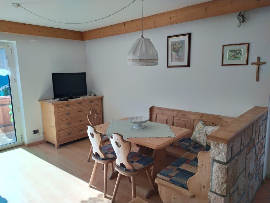 Casa VILLA RITA bietet Apartments in Vigo di Fassa, einer sehr ruhigen Gegend, nur 10 Gehminuten vom Stadtzentrum entfernt. Wohnung im ersten Stock bestehend aus einem Schlafzimmer mit Doppelbett und einem Schlafzimmer mit drei Betten, einem großen Badezimmer, einem Wohnzimmer und einer Küche, einem großen Balkon mit Aussicht und einem großen Garten. Geeignet für Familien mit Kindern, Garten, Grill, Panoramalage, Privatparkplatz, Skiraum und Schuhtrockner, Bettwäsche vorhanden, Babybetten auf Anfrage, Wi-fi.