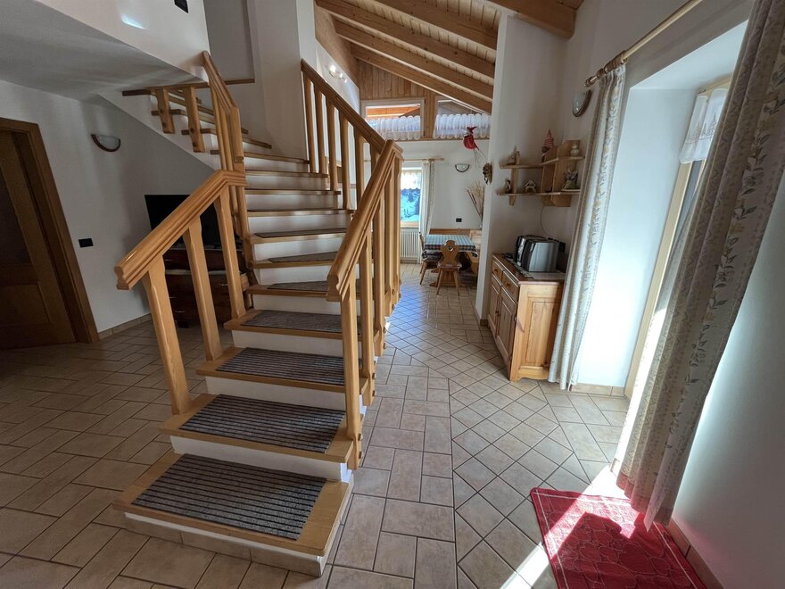 Die Wohnung befindet sich im Ortsteil Sorte, der etwa 1 km vom Zentrum von Moena entfernt ist. Neben dem Auto kann man das Dorf auch mit einem schönen Spaziergang durch die Wiesen zwischen Sorte und Moena erreichen.