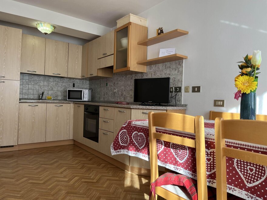 Bettwäsche vorhanden, Haarföhn, Bügeleisen, Kinderhochstuhl, Kühlschrank, Balkon, Toaster, Wasserkocher, Deckbetten, W-Lan kostenlos , Mikrowelle, Wohnung ohne Teppichboden, WiFi, Waschmaschine, Wohnraum mit Kochnische, Bettwäsche zur Verfügung gestellt , Fernseher, Toilettenwäsche, Backofen