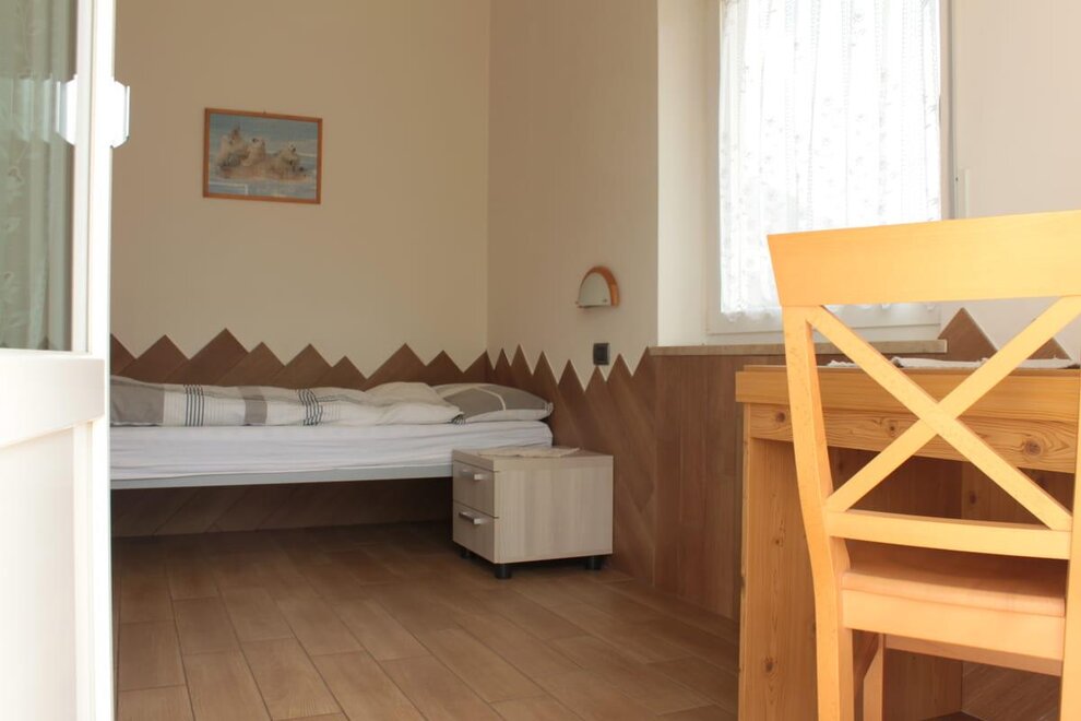 Sie besteht aus einem Eingangsbereich mit Flur, der über eine Garderobe verfügt, einer offenen Küche mit einem hellen Wohnbereich, der zum Südostbalkon führt, von dem aus man einen großartigen Blick auf das Tal und die Gipfel hat, einem Schlafzimmer mit Fenstern nach Osten und Süden, einem großen Zweibettzimmer (erweiterbar auf 4) mit der Möglichkeit, es zu einem Doppelbett zusammenzustellen, das auf die Nordostterrasse blickt. Abgerundet wird die Wohnung durch ein Badezimmer mit Fenster und Dusche.
