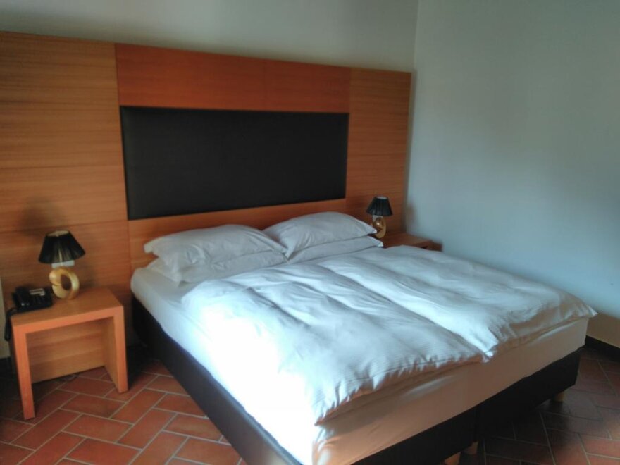 Geräumiges Zimmer bestehend aus Wohnbereich mit Schlafcouch und Schlafzimmer mit Doppelbett. Bei Vorzug von drei Einzelbetten bitten wir um eine spezielle Anfrage und um Geduld auf die Rückmeldung des Personals. Das private Bad verfügt über eine Badewanne und eine Duscharmatur.