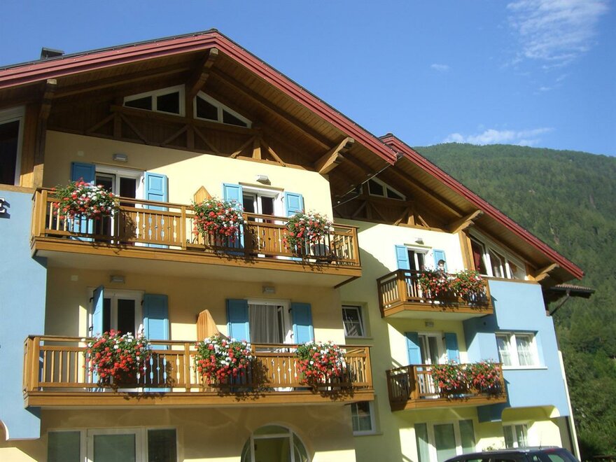 LAGE: Sonnig, ruhig, im Großraum-Skigebiet "Skirama Dolomiti Adamello Brenta", wenige Autominuten von den Aufstiegsanlagen Peio, Marilleva und Tonalepass entfernt. Auch die wichtigsten Strukturen (Supermarkt) liegen in der Nähe. AUSSTATTUNG: neue Appartements mit jedem Komfort: Lift, Balkon, TV, Waschmaschine, Spülmaschine, Mikrowelle, Föhn, Radiowecker, Safe, Sonnenterrasse, Privatparkplatz auch für Busse, Skistall, Garage auf Anfrage. LEITUNG: Im Familienbesitz.