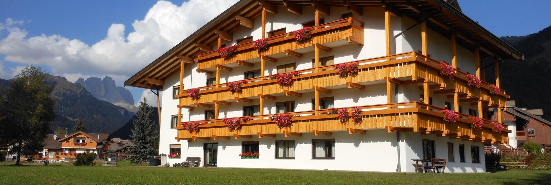 Residence Dolomia, in dem weitläufingen Fläche von Pozza di Fassa gelegen, inmitten der Ebene von Dassè, in idealer und ruhiger Lage und mit Panoramablick auf die Dolomiten des Val di Fassa. Das Haus verfügt über Parkplatz, einen großen Garten mit Grillplätzen und einen gemütlichen Freizeitraum. Es werden Einzimmer-Appartements vom Typ I, Zweizimmer-Appartements vom Typ II und Dreizimmer-Appartements vom Typ III angeboten, die alle über eine Kücheecke mit Kühlschrank, vollständige Ausstattung, Wäsche für Bad, Betten und Tischdecken verfügen, die wöchentlich gewechselt wird.