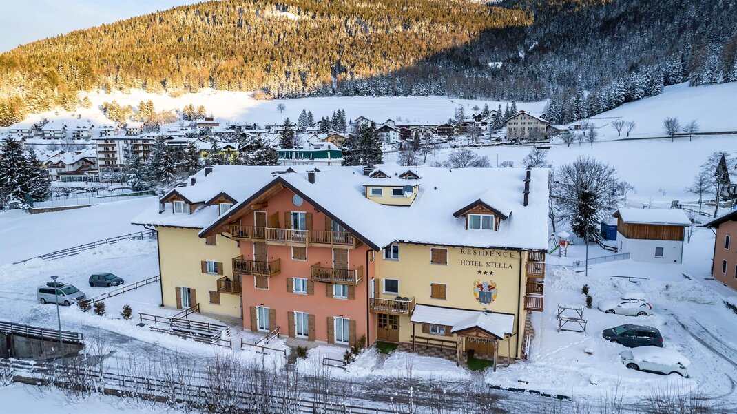 Residence Stella liegt an der Costa di Folgaria in ruhiger und sonniger Lage gegenüber dem Start der Skilifte des Skigebiets Alpe Cimbra und des Folgaria Golf Club. Es verfügt über 37 Apartments in verschiedenen Typen, Größen, Betten und Preisen, um große Familien oder Gruppen von Freunden unterzubringen. Alle Apartments verfügen über einen Wohnbereich mit Küchenzeile (ausgestattet mit Geschirr und Töpfen) und TV, Bad mit Dusche, 1 oder 2 Schlafzimmer (je nach Art der Wohnung, Zwei- oder Dreizimmerwohnung). In der Gebühr enthalten sind die Pauschale für den Strom-, Wasser- und Gasverbrauch, die kostenlose Miete von 1 Satz Bettwäsche und Handtüchern für die erwartete Anzahl von Personen, 1 reservierter Parkplatz in der Garage und 1 privater Keller mit Abstellraum beheizte Skier und Schuhe (1 pro Apartment), kostenloses WLAN und Trentino-Gästekarte.