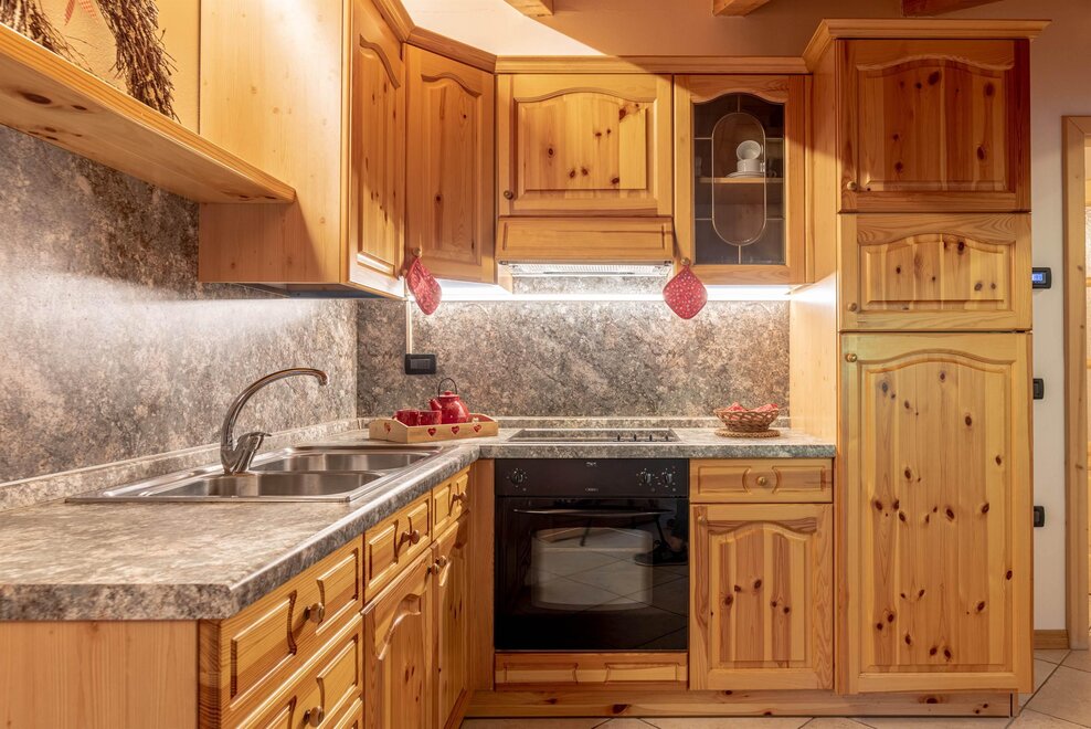 Diese ist die kleinste Wohnung für 4/5 Personen. Es gibt ein einziges Doppelbettzimmer mit 1 Bett, ein Wohnzimmer mit Kochfeld, mit Kühlschrank, Kühltruhe und Elektroofen, Bettcouch, Fernseher, Badezimmer mit Dusche.Das Apartment hat Teller in Keramik, Kochnische, Parkettboden in den Zimmern.
