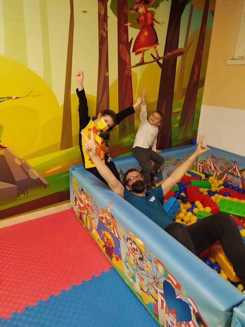 Große Wohnung im Erdgeschoss (Seite des städtischen Spielplatzes) bestehend aus Eingangshalle mit Doppelschlafsofa, Wohnbereich mit Küchenzeile und Doppelschlafsofa, großem Badezimmer mit Dusche, Vorraum mit Einzelbett und Doppelschlafzimmer für maximal 7 Personen inklusive maximal 5 Erwachsene.