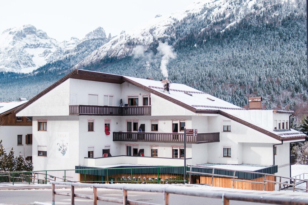Der Residence Viola ist eine Appartementanlage, die 250 m vom Zentrum und den Skiliften (Paganella 2001) entfernt liegt. Es bietet zwei- und dreizimmerige Apartments mit Platz für 4 bis 7 Personen.