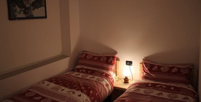 Wohnung im ersten Stock, bestehend aus Wohnzimmer mit Kochnische, 1 Schlafzimmer mit Doppelbett, 1 Zweibettzimmer, 1 Badezimmer, Balkon; Raum zur Lagerung von Geräten; Haustiere kleinerer Rassen erlaubt. Englischkenntnisse.