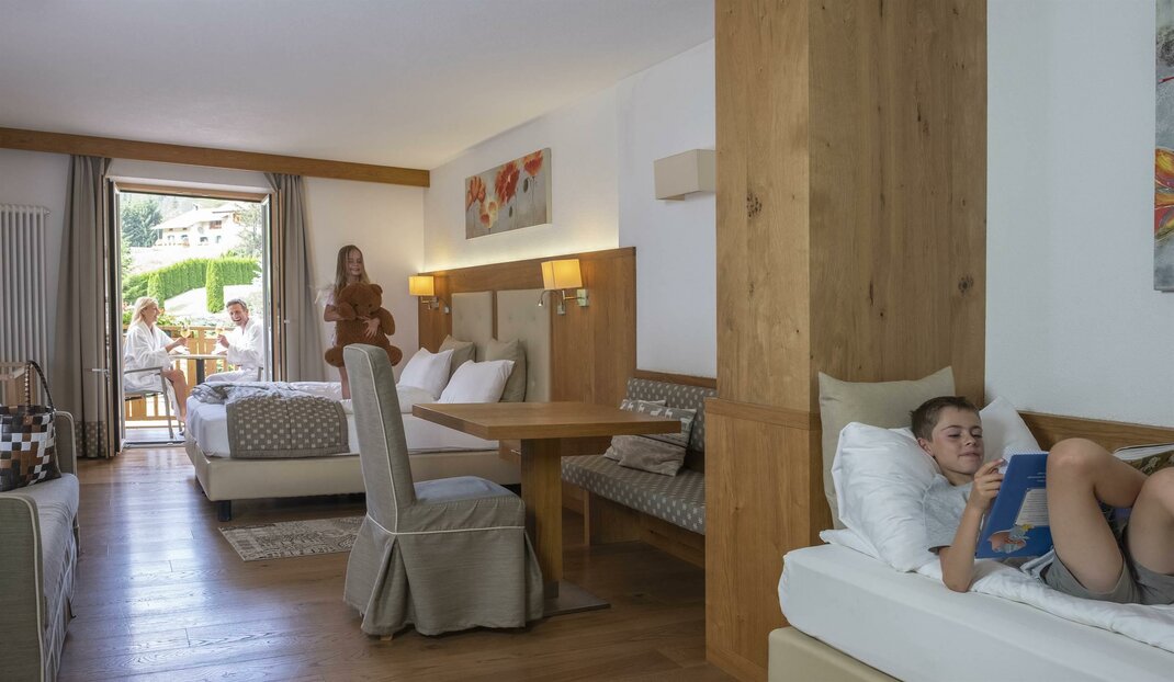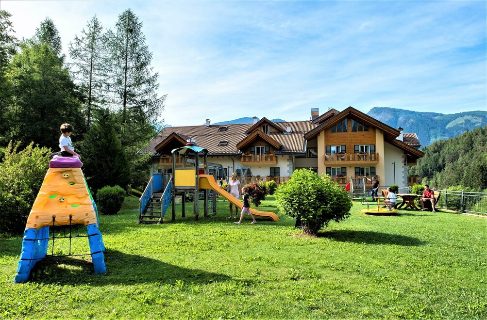 Das Paradies für Familien in Fleimstal, gehört zu den schönsten Tälern in den Alpen, weit nur einen kurzen Spaziergang vom Zentrum von Tesero. Nach einem erlebnisreichen Tag in den Bergen können Erwachsene einen wunderschönen Urlaub mit dem Wellness und die Entspannung in den Thermen von über 1.500 Quadratmetern mit Innen-und Außenpool und Spa zu genießen, während die Kinder können unendliche viele Möglichkeiten für Spaß in weiten Räume, die ihnen gewidmet sind, mit Betreuung und professionelle Animation ausprobieren. Wir bieten eine leichte und schmackhafte Küche, mit gesunde Rezepten mit frischen Zutaten. Ein großes Auswahl an Weinen und der Service aufmerksam und kompetent ergänzen das Angebot einer erstklassiger Küche. Zimmer und Familiensuiten mit allem Komfort eines 4-Sterne-Resort. Privaten Park mit Gärten, biologischen kleinen See, Spielplatz, Parkplatz und Garage. Die Familie Peretti freut sich, Sie in Ihrem Hause begrüßen zu dürfen ... weg von zu Hause!