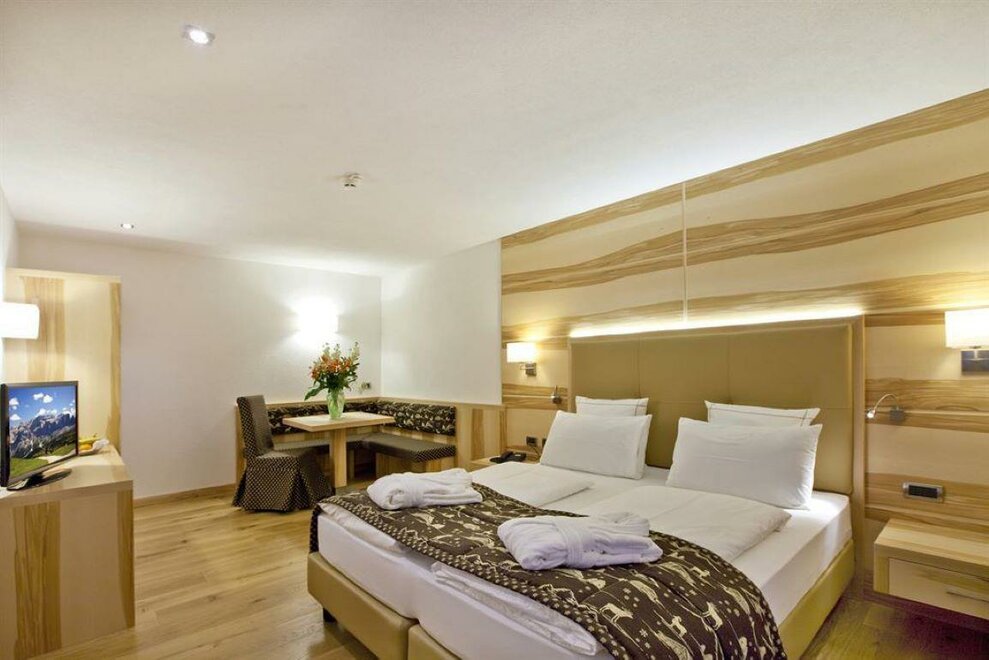 Gemütliches Doppelzimmer im Lärche von 24 m² mit Balkon, Sitzecke mit Couchbett, Sat-TV, Safe, Telefon, Minibar, WiFi Internetanschluss, Bad mit Dusche, Schminkspiegel und Haartrockner.