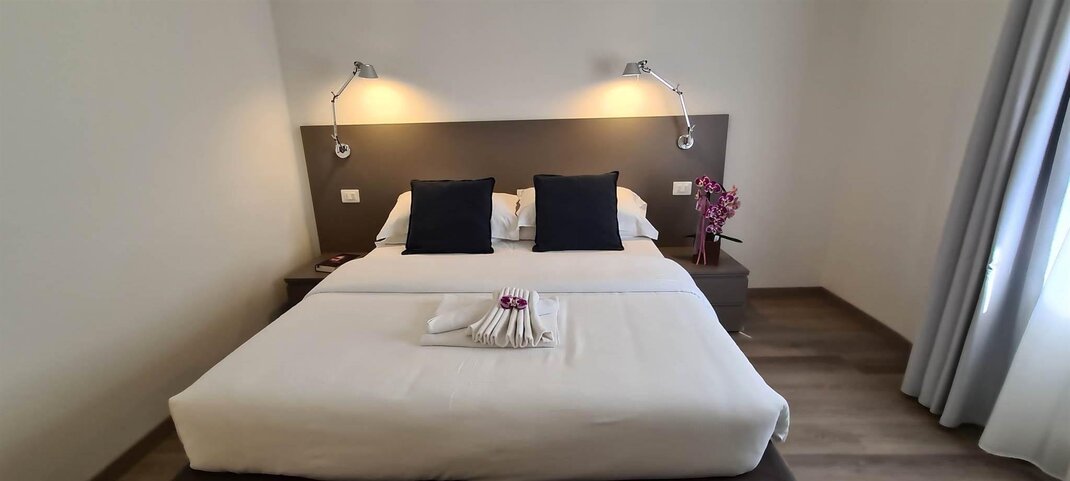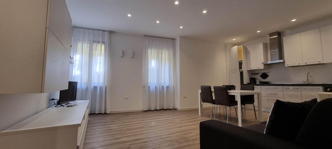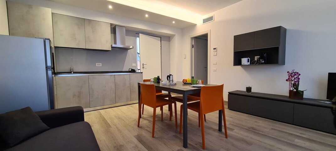 Standard-Zweizimmerwohnung 45mq2 personenZimmer mit Doppelbett, Bad mit Dusche und Waschmaschine, Wohnzimmer mit Kochnische und Geschirr, Flachbild -TV, Wi-Fi frei.