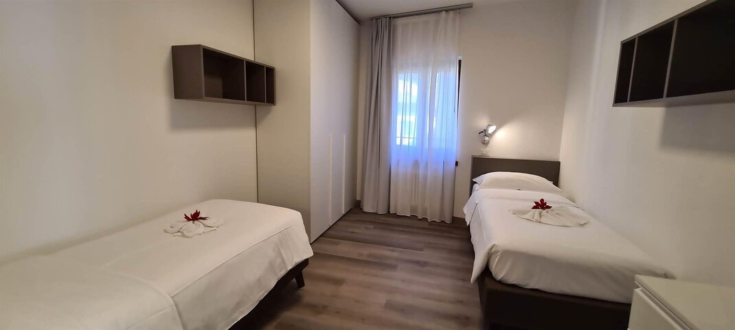 Standard-Dreizimmerwohnung 65mq3/4 personenZimmer mit Doppelbett, Schlafzimmer mit zwei Einzelbetten, Bad mit Dusche und Waschmaschine, Wohnzimmer mit Kochnische und-Geschirr, Flachbild -TV, Wi-Fi frei.