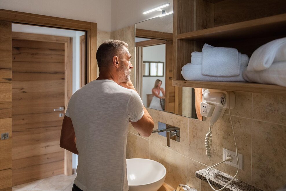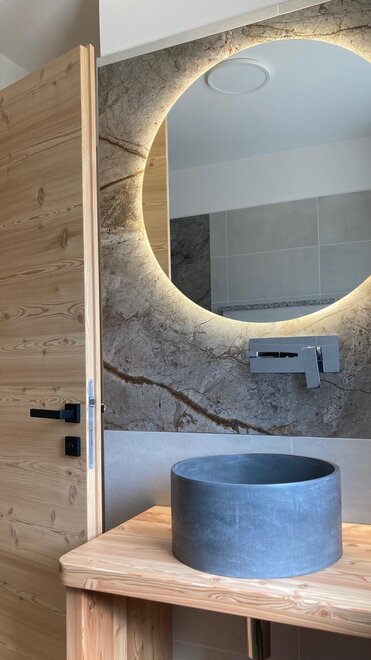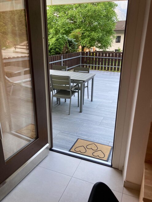Erdgeschoss-Suite-Apartment mit überdachter Terrasse, im alpinen Landhausstil eingerichtet, buchbar für 2 Personen oder bis zu 3 Personen mit dem Schlafsofa.