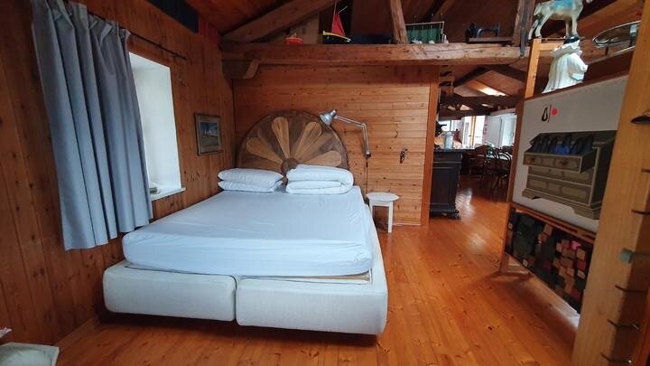 Die Wohnung besteht aus einem Holz-Loft im obersten Stockwerk des historischen Palastes Negrelli. Die Fenster blicken auf drei Seiten und beherrschen zusammen mit der Terrasse den Blick auf die Feltriner Gipfel. Der künstlerische und antike Inhalt des Hauses verleiht mehr Magie für diejenigen, die den Wert zu schätzen wissen.