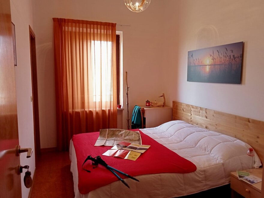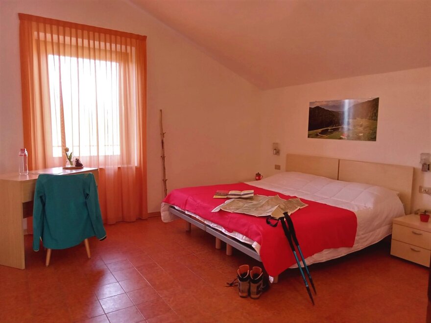 Unser Doppelzimmer ist komfortabel und es ist mit Kleiderschrank und Schreibtisch ausgestattet. Das Bad hat eine Dusche, Haartrockner und Handtücher. Die Doppelzimmer sind hell, weil sie entweder über einen Balkon oder ein großes Fenster haben. Im Sommer können unsere Gäste im grünen und gepflegten Garten entspannen.