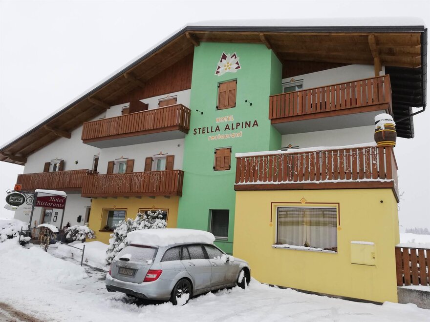 Das Hotel Stella Alpina ist eine Familienbetrieb seit 1961 und es ist zunächst als Mietwohnung in Dorf Sarnonico in der Natur geboren. Nach dem Engagement der Inama-Familie, ist es jetz ein gemütliches Hotel geworden. Daher der Name Stella Alpina, das Blumen-Symbol für Mut und Berg-Respekt .