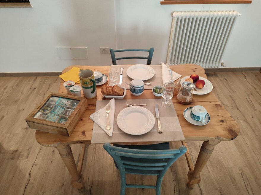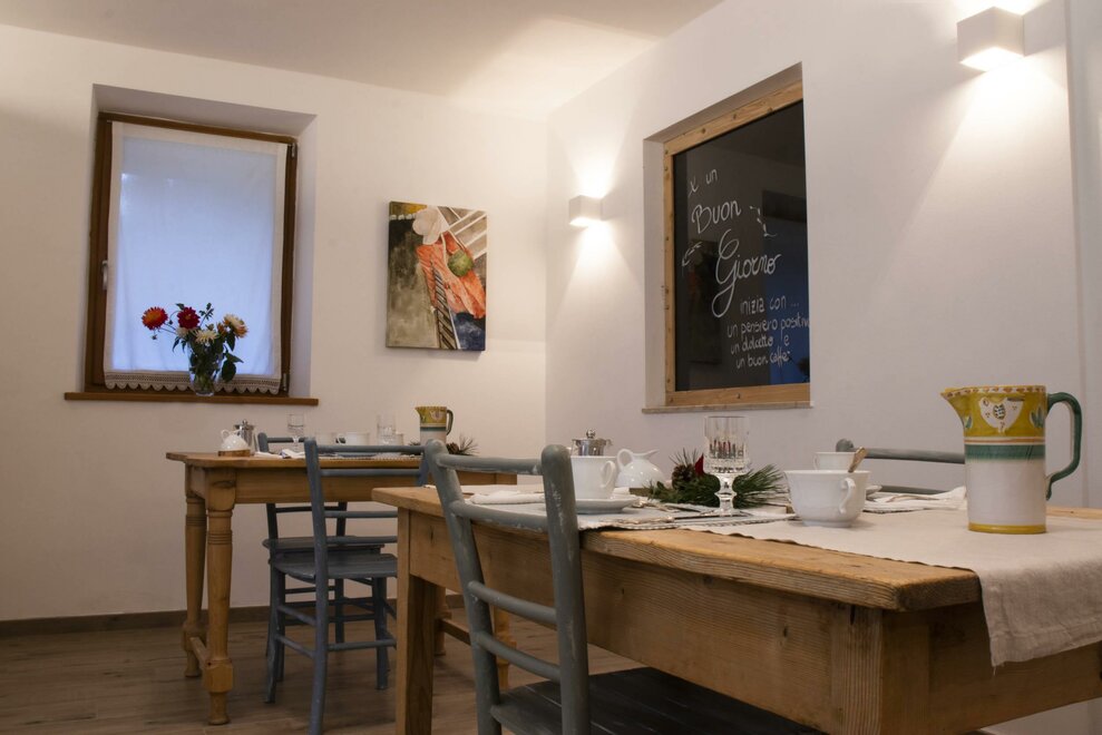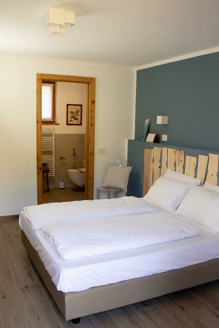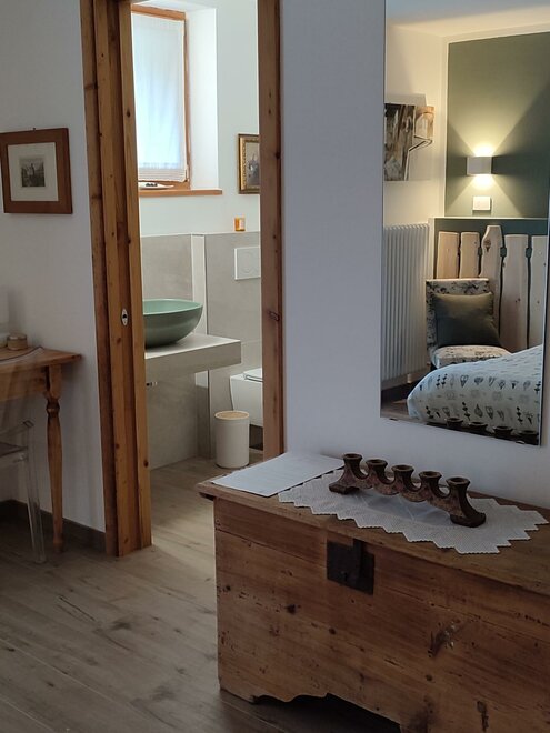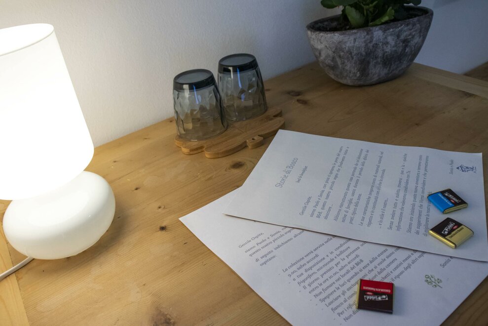 Ab heute freuen wir uns, dass "Storie di bosco" auch ein B&B ist. Wir verfügen über zwei Zimmer: "Pino mugo" und "Cirmolo", beide Doppelzimmer mit eigenem Bad. Der Kopfteil der Betten wurde von uns aus Zirbenholz hergestellt: Es sieht ein wenig aus wie ein Zaun, und sein charakteristischer Duft sorgt für Ruhe beim Schlafen. Die Möbel, die das B&B einrichten, sind auf viele Weisen hierher gekommen: Geschenke von Freunden, Verwandten oder von Menschen, die nicht mehr bei uns sind. Es sind Gegenstände, die wir schätzen, weil sie aus Orten gerettet wurden, in denen sie vernachlässigt und ungenutzt waren und jetzt, aufbereitet und in neues Leben gebracht, hier sind; sie sind nicht perfekt, aber sie gehören uns, wir haben uns um sie gekümmert und wir lieben und schätzen sie, gerade weil sie anders sind. Und die Vielfalt geht über das Alter und kleine Risse hinaus, es ist eine Gastfreundschaft, die die Form eines anderen Reichtums annimmt.