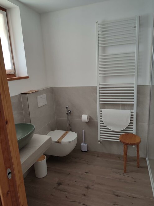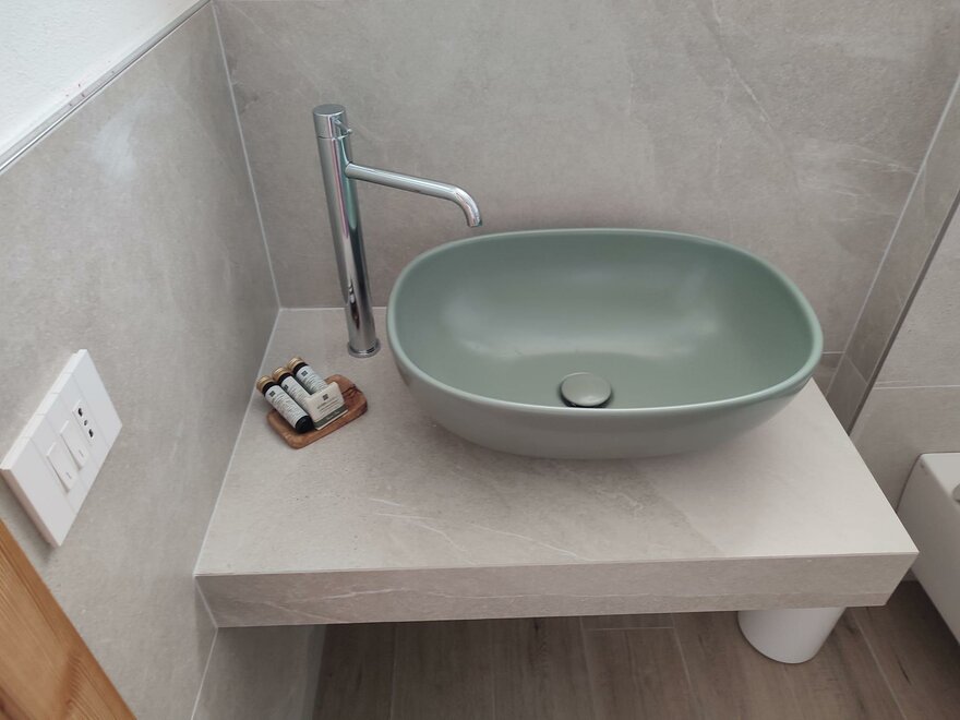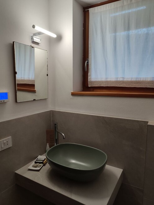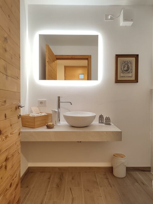 ... here inside you will also find another plant, the Swiss pine ... and it is the wood used by us to make the headboard of the bed ... the appearance looks a bit like a fence and we hope that its characteristic scent can offer you peace of mind and rest ...Sanitäre Ausstattung