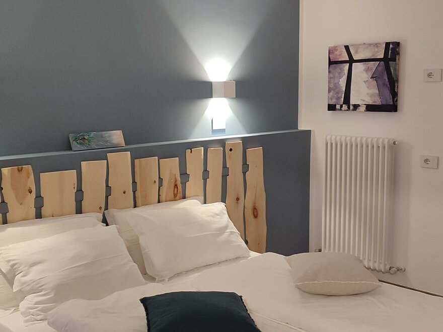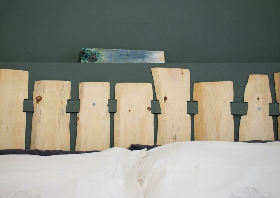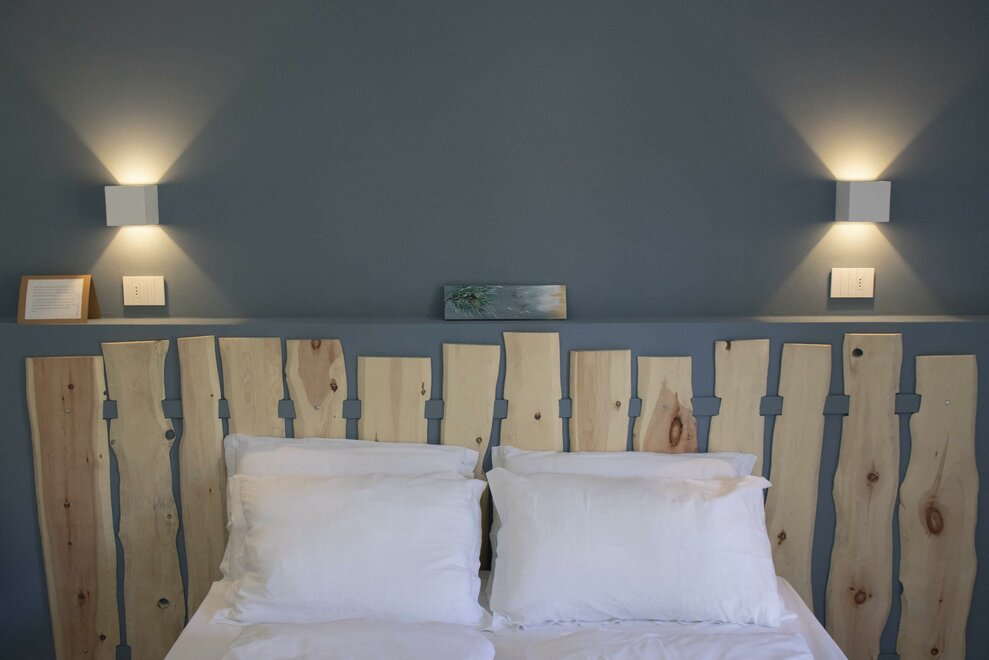 to remember it here in particular is the headboard of the bed made by us ... the appearance looks a bit like a fence and we hope that its characteristic scent can offer you tranquility and rest ...Lage/Blick Zimmer/Appartement