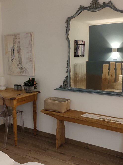 Die Zimmer und Bäder wurden 2022 renoviert, die Holzmöbel und einige der Einrichtungen des B&B sind auf viele Arten hierhergekommen … Geschenke von Freunden, Verwandten oder von Menschen, die nicht mehr unter uns sind … es sind Gegenstände, die wir schätzen, weil sie aus Orten gerettet wurden, an denen sie verstaubt und ungenutzt waren, und jetzt, neu eingerichtet und zu neuem Leben erweckt, sind sie hier … sie sind nicht perfekt, aber sie gehören uns, wir haben uns um sie gekümmert und lieben und schätzen sie, gerade weil sie anders sind … und die Vielfalt geht über Staub, das fortschreitende Alter und die kleinen Risse hinaus … es ist Gastfreundschaft, die die Form eines anderen Reichtums annimmt…