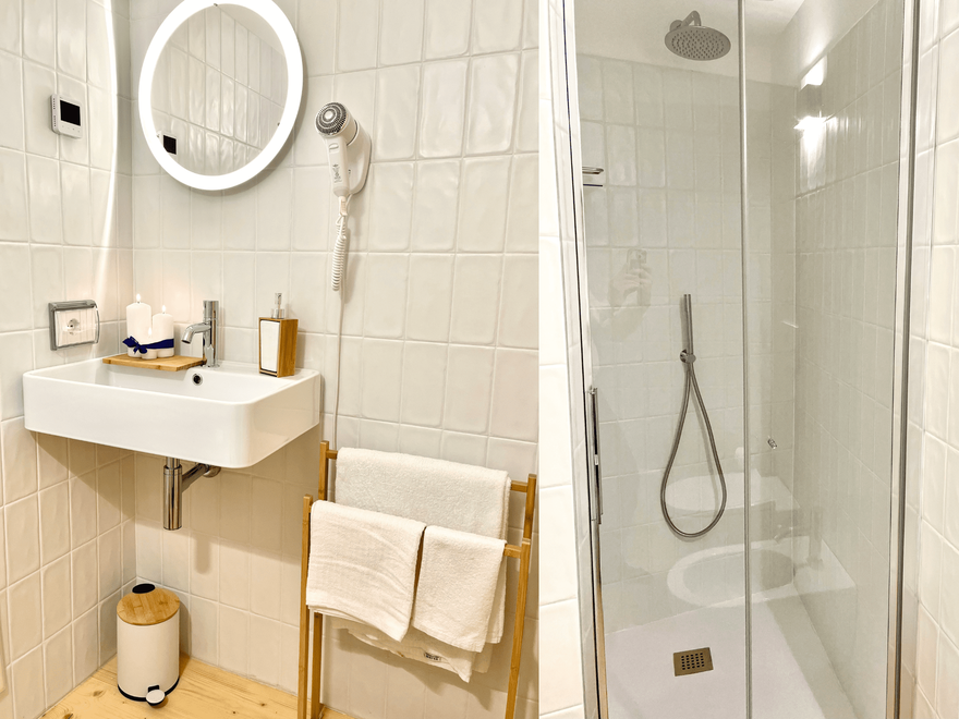 Die 2 Suiten sind miteinander verbunden und durch eine schalldichte Tür getrennt. 1 bis 6 Personen haben Zugang zur ersten Wohnung (2 Schlafzimmer, 1 Bad, Wohnzimmer/Küche, Terrasse), 7 bis 10 Personen zu beiden (4 Schlafzimmer, 2 Bäder, 2 Küchen, 2 Wohnzimmer/Küchen, Terrasse)