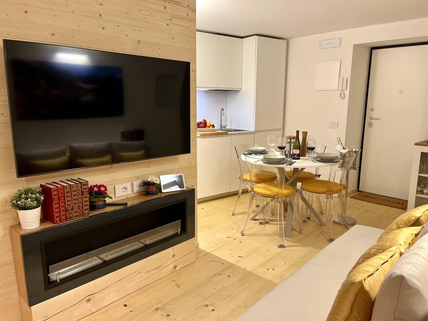 Stock des ältesten historischen Gebäudes von Pinzolo. Ausgestattet mit allem Komfort, um die vielen Möglichkeiten für Sport, Entspannung, Gesundheit und Schönheit, die Pinzolo sowohl im Sommer als auch im Winter bietet, in vollen Zügen zu genießen; direkt im Zentrum, kostenlose Parkplätze, einen Steinwurf von den Skiliften entfernt.