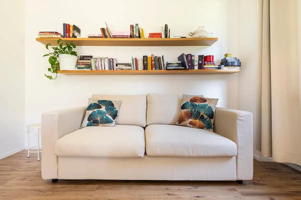 In der Unterkunft gibt es eine schöne Küche mit Induktionskochfeld, Kühlschrank und Mikrowelle. Außerdem sind kleine Haushaltsgeräte vorhanden: der Toaster, der Mixer, eine Kaffeemaschine. Im Wohnzimmer beherbergt ein Bücherregal Bücher in verschiedenen Sprachen und Reiseführer, um die Umgebung zu erkunden. Wir haben einen Fernseher und eine WLAN-Verbindung. Im Bad gibt es eine Waschmaschine und einen Fön. Im Schlafzimmer steht ein Doppelbett und im Wohnzimmer ein Schlafsofa und auf Anfrage einige Kinderbetten. Die Einrichtung ist modern und lebhaft.