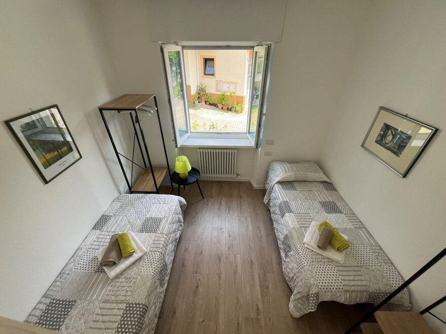 Dieses Apartment ist perfekt für Familien und Gruppen von Freunden, da es über zwei Schlafzimmer verfügt: eines mit einem Doppelbett (nicht trennbar) und eines mit zwei Einzelbetten, was mehr Platz und Privatsphäre für alle bietet.