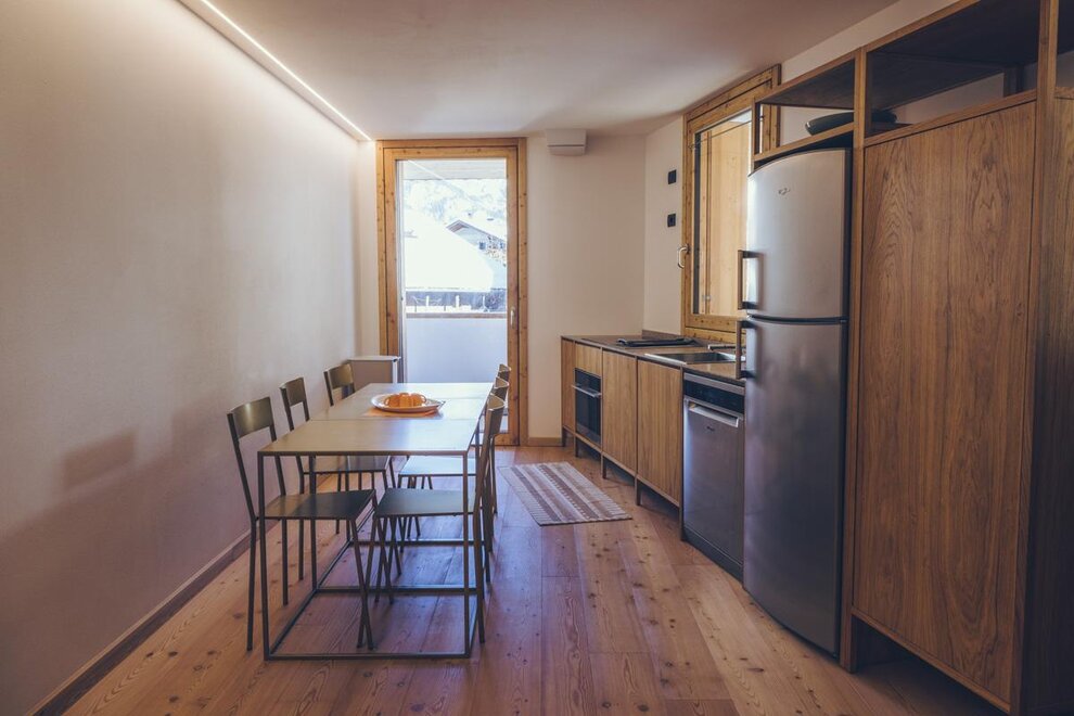 Voll ausgestattete Küche: Kühlschrank, Gefriertruhe, Geschirrspüler, traditionelle Backofen, Mikrowelle und Induktionskochfeld, Mixer. Schnelles Wi-Fi in allen Zimmern. Waschmaschine (neben der Waschküche in den Gemeinschaftsräumen). Reservierter Parkplatz direkt vor dem Eingang, um das Be- und Entladen zu erleichtern, gemeinschaftliche Waschküche ausgestattet mit Waschmaschine, Waschbecken, Trockner und Bügeleisen, perfekt für längere oder aktivere Aufenthalte, geschlossener und beheizter Fahrrad- und Skiraum, ideal für alle, die die Berge in jeder Saison erkunden möchten, mit dem Komfort eines sicheren und trockenen Raumes für die Ausrüstung. Wir stellen Reisebettchen und Kinderbett zur Verfügung.