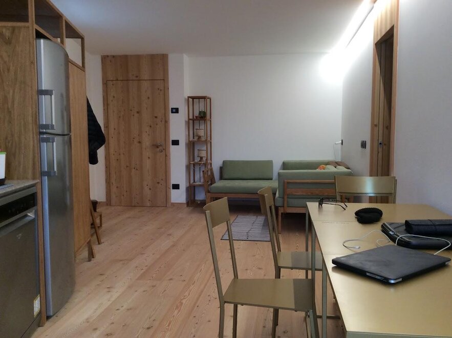 Im Jahr 2019 erbaut, befindet sich in Sen Jan di Fassa, in der Ortschaft Meida, im Zentrum des Dorfes nahe der Kapelle San Nicolò. Ein innovatives architektonisches Projekt, ermöglicht durch den Architekten Pietro Zulian, umfasst 3 Wohnungen mit hochwertigen Ausstattungen aus Dolomitstein, Lärchenholz, maßgeschneidertem Designermobiliar und Einbauten. Fußbodenheizung, Warmwasser über Photovoltaikanlage und WLAN. Das Haus befindet sich in einem Wohngebiet und genießt eine ruhige, sonnige und panoramareiche Lage, idealer Ausgangspunkt für Wanderungen und Erkundungen der Umgebung.