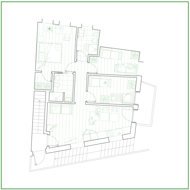 Wohnung - ERDGESCHOSS (3 Schlafzimmer und zwei Badezimmer, Wohnbereich mit Küche) und HOCHPATERRE: zwei Doppel- oder Ehezimmer, jeweils mit eigenem Bad und einem großen Wohnbereich mit Wohnzimmer und Küche, mit der Möglichkeit zur Verbindung mit der TAVERNE (mit 2-3 Schlafplätzen).