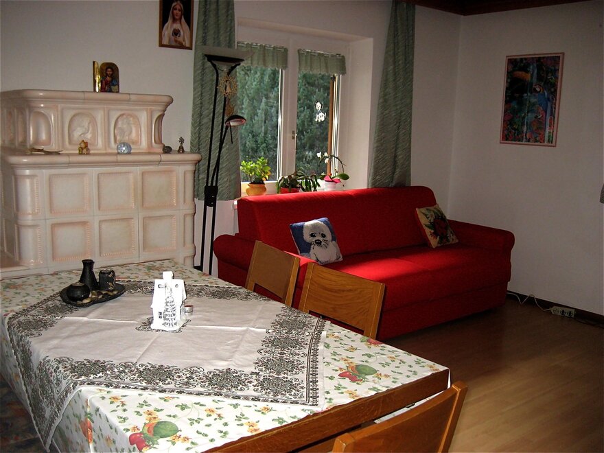Eine 100 qm große Wohnung für 5-7 Personen mit Wohnzimmer mit Doppelschlafcouch, Küche, zwei Doppelzimmern, einem Einzelzimmer, Speisekammer, 2 Bädern.