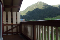 Kürzlich renovierte Wohnung mit Wohnzimmer, Doppelschlafcouch, Kochnische, Schlafzimmer mit Doppelbett, Badezimmer mit Dusche und Waschmaschine. Großer Balkon mit Panoramablick. Privater Parkplatz, Garten, Ski- und Fahrradkeller, Schuhwärmerschrank.